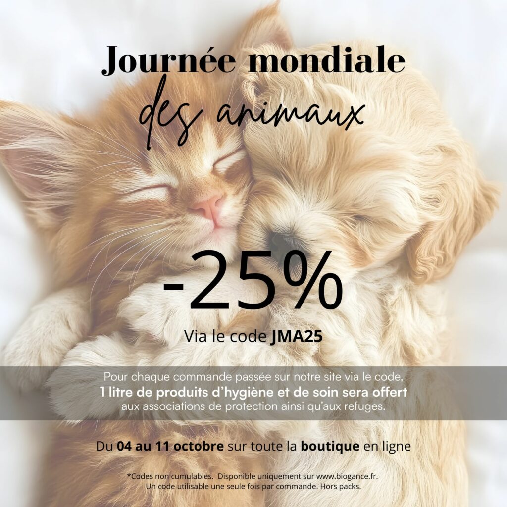 Chez Biogance, nous concevons des soins bio et naturels en plaçant le respect de l’animal et de la planète au cœur de notre démarche.